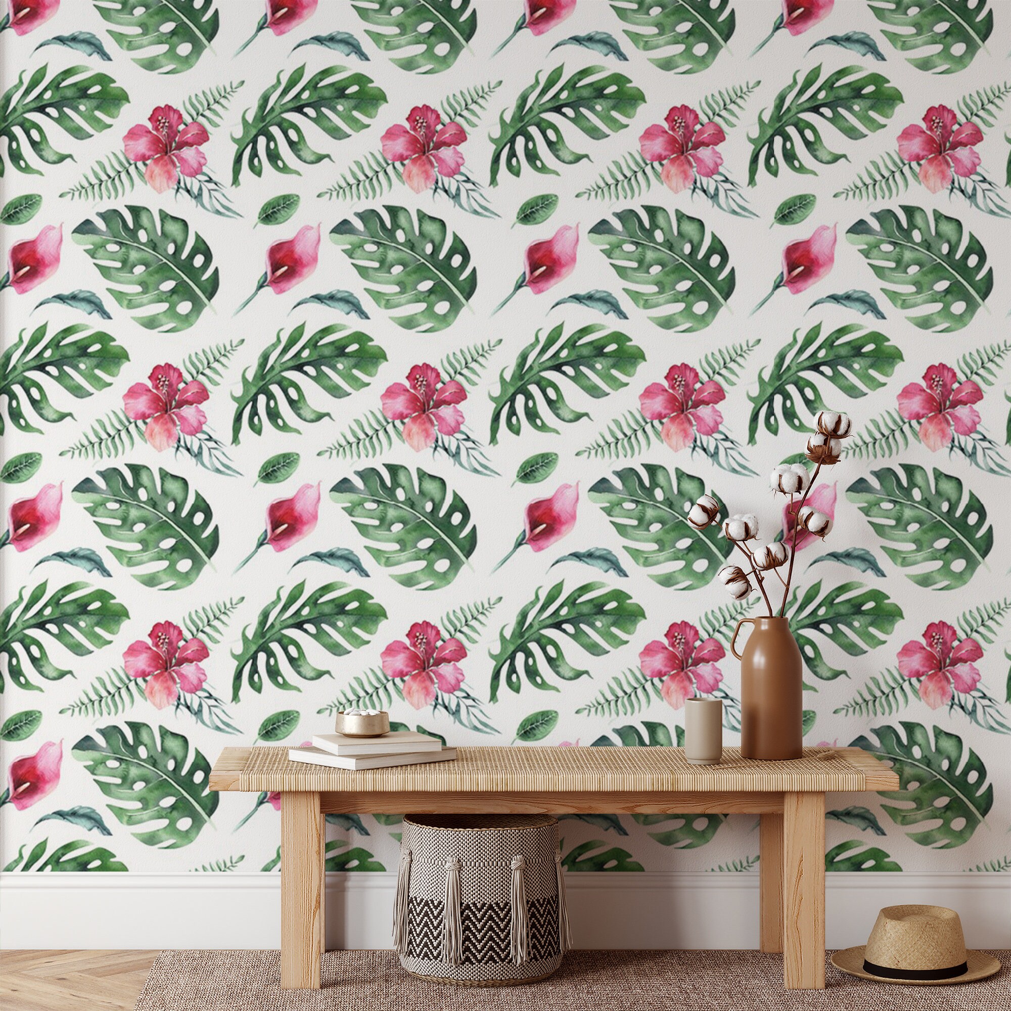 Buy Hibiscus Pattern Removable Wallpaper Pretty Flower Wall Online In India Etsy